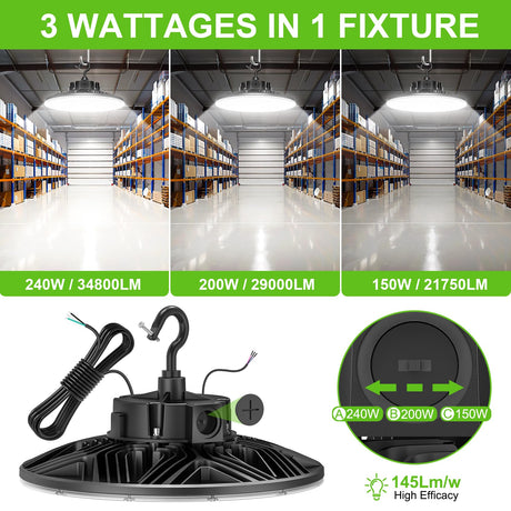 LED High Bay Light - PRO Series, 240W,34800lumens, Selectable Wattage,277-480V