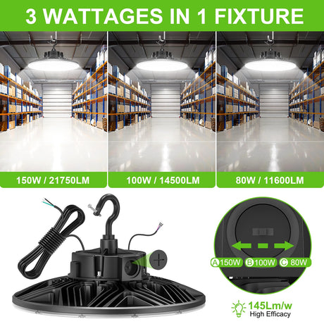 LED High Bay Light - UFO02 Series,150W,22500lumens,Selectable Wattage,5000K,277-480V