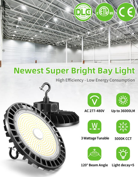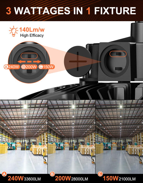 LED High Bay Light - UFO05 Series,240W,36000lumens,Selectable Wattage,5000K,277-480V