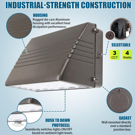 LED Wall Pack Light- WP Series,80W,11200lumens,Selectable Wattage & CCT,100-277V