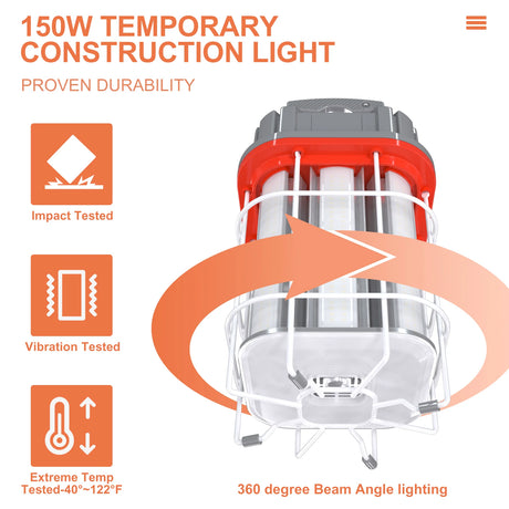 LED Temporary Work Light- PTL Series,80W,12000lumens,Selectable Wattage& CCT,AC120V,ON/Off Button