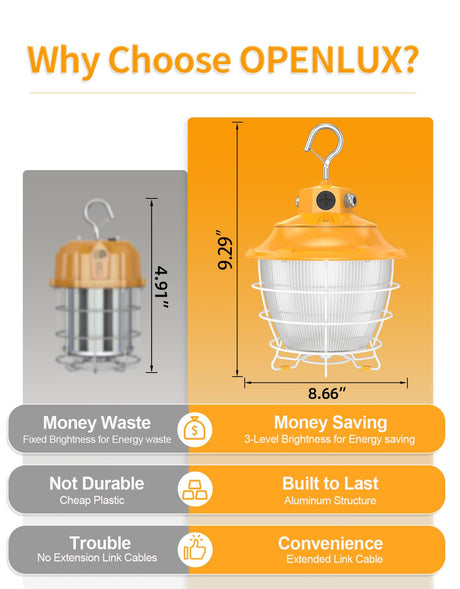 LED Temporary Work Light- PTL Series,60W,9000lumens,Selectable Wattage& CCT,AC120V,ON/Off Button