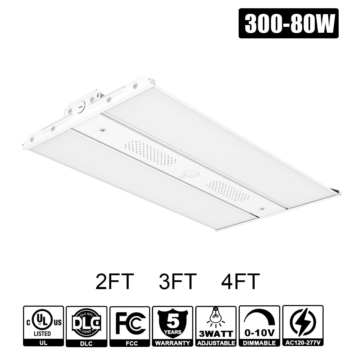 300W - 80W LED Linear High Bay Lights 3WATT Tunable 5000K 120-277VAC 0-10V Dim