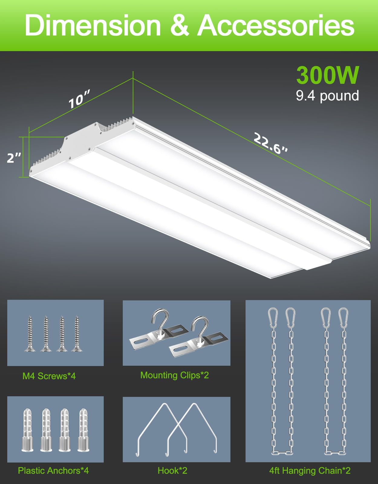 - 【Super Bright & Energy Saving】Extra bright 300W high bay shop light with 45,000 lumen, 150LM/W high efficiency, high power factor >90%, saving 85% your electric bill, 277-480VAC input