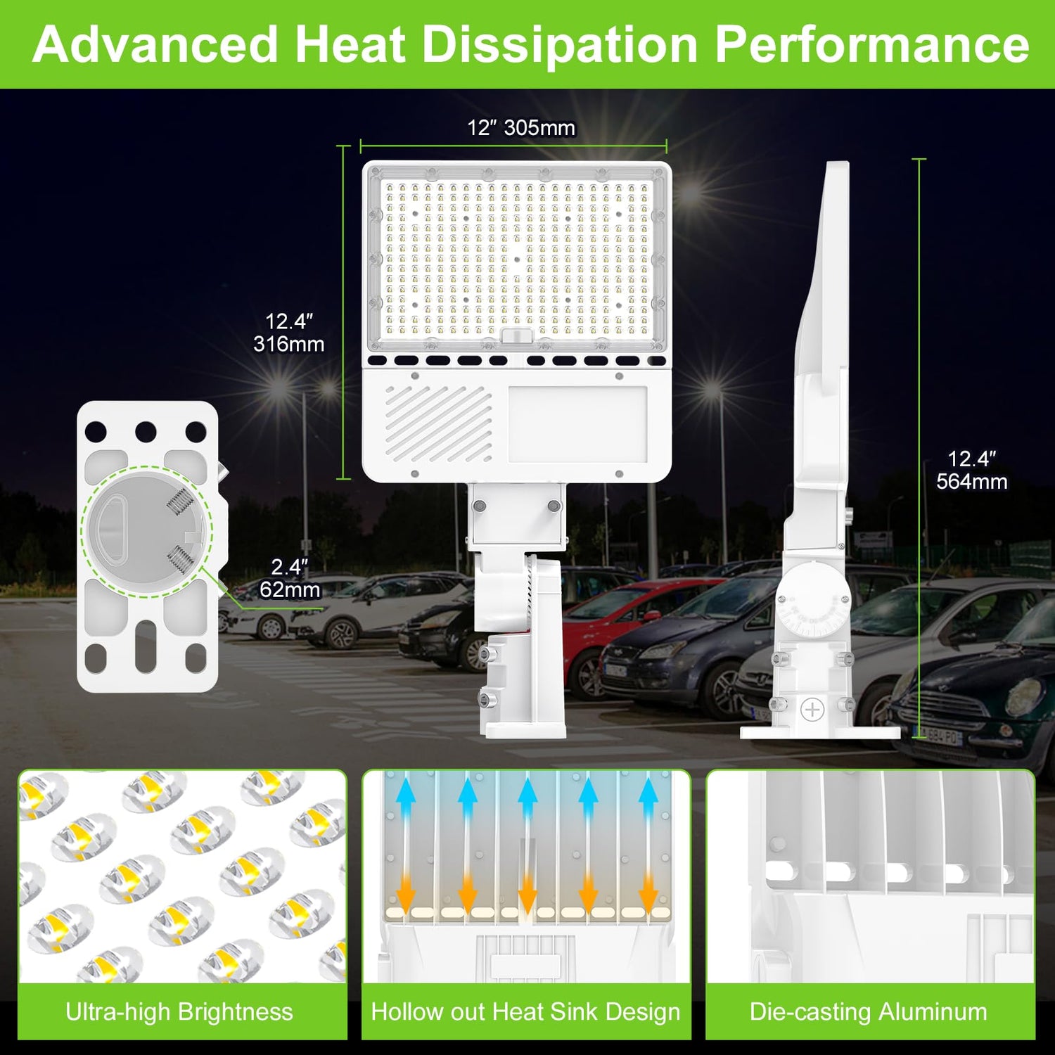 - [ Durable And Long Lifespan ] - LED commercial pole Shoebox light made of Industrial grade die-casting aluminum, SMD 3030 LED chips, brand driver, and Smart heat dissipation design, After tens of thousands of testing to ensure 50000 hours of lifespan
