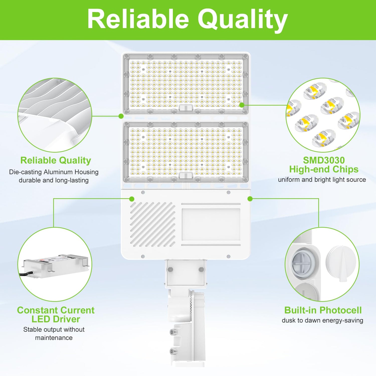 - [ Durable And Long Lifespan ] - LED commercial pole Shoebox light made of Industrial grade die-casting aluminum, SMD 3030 LED chips, brand driver, and Smart heat dissipation design, After tens of thousands of testing to ensure 50000 hours of lifespan
