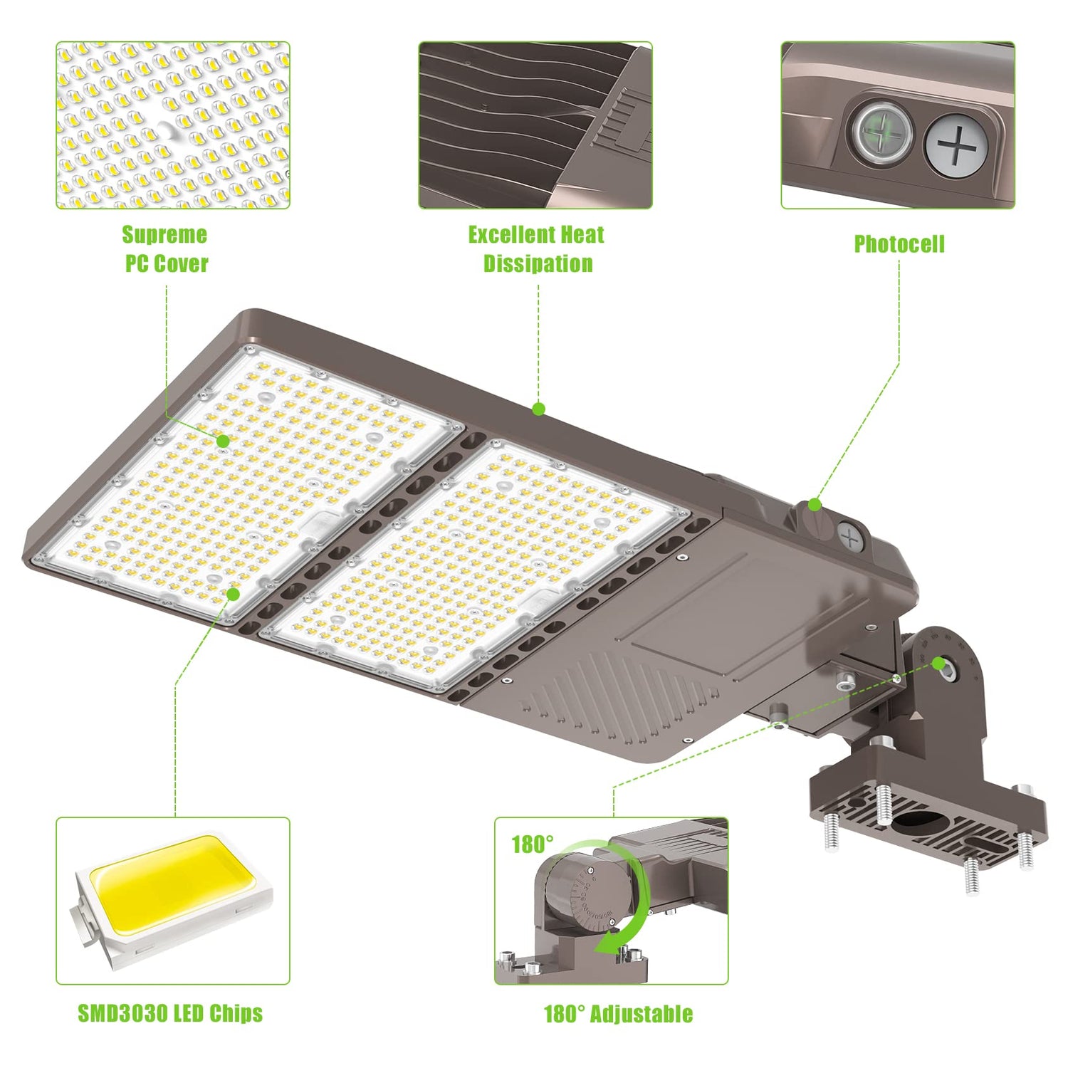 - 【Extra Bright, Quality & Saving】UL Listed 240W parking lot lights with SMD3030 quality chips offer 150LM/W high efficient. Saving 85% electric bill.