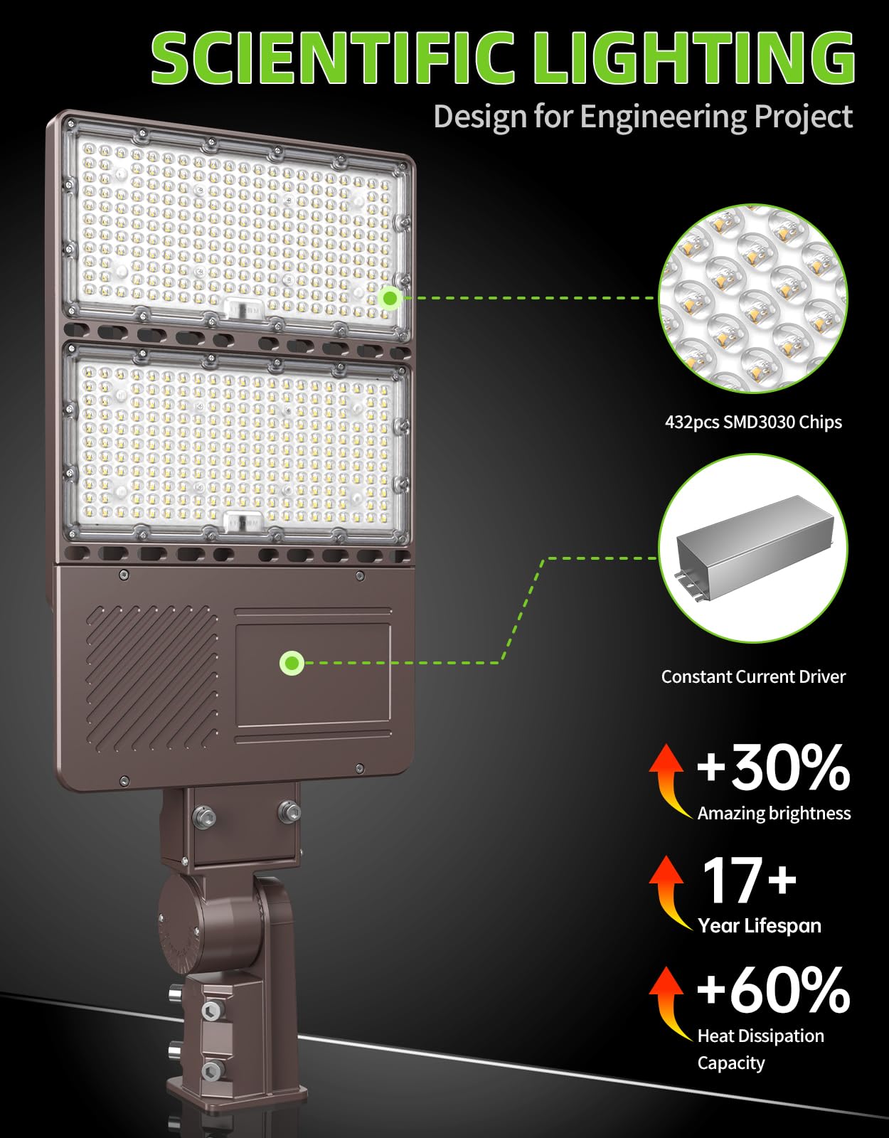- [ Durable And Long Lifespan ] - LED commercial pole Shoebox light made of Industrial grade die-casting aluminum, SMD 3030 LED chips, brand driver, and Smart heat dissipation design, After tens of thousands of testing to ensure 50,000 hours of lifespan