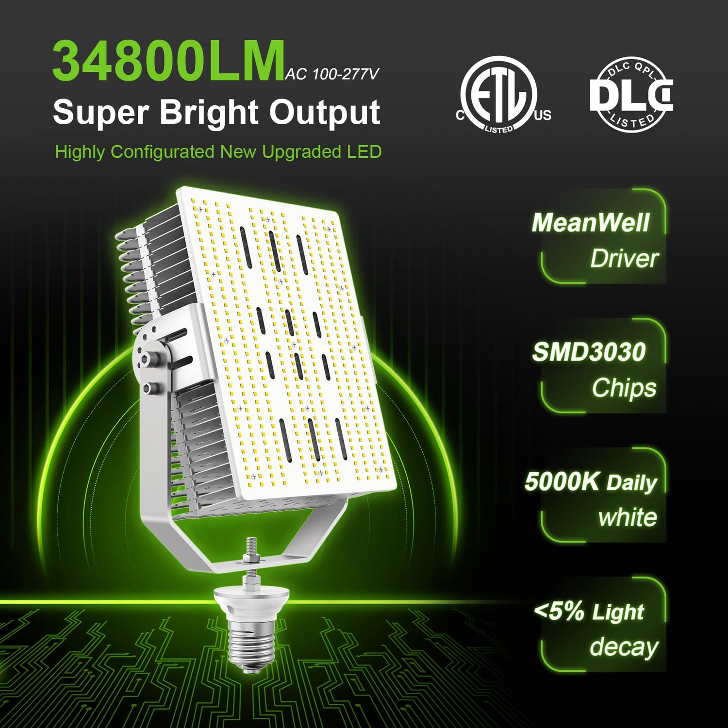 - Super Bright Shoexbox LED Retrofit Kits - With outstanding 145 lumens per watt, the led retrofit kit provides 43,500 lumen output. This 300 watt led light is a perfect replacement for a traditional bulb,typically appearing brighter and also providing more than 90% in energy savings.80+ CRI Rating and 5000K for super bright outdoor large area lighting.