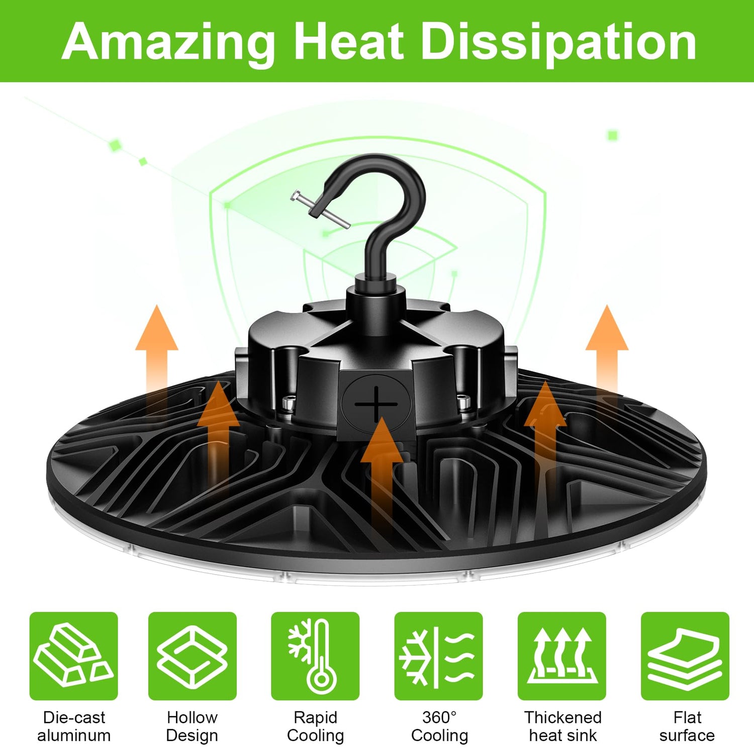 - [ HIGH QUALITY & DURABLE ] - This LED high bay light is made of industrial grade heavy duty aluminum housing with superb heat dissipation[6KV Surge test approved], advanced SMD3030 LED chips high-end driver. Our led high bay light ensures a 50000H lifespan